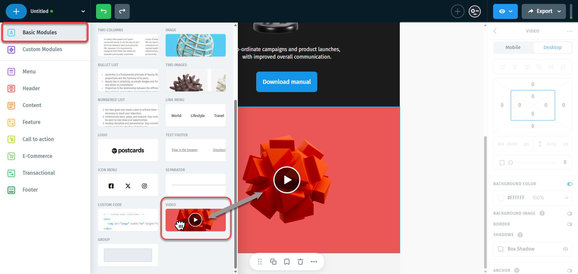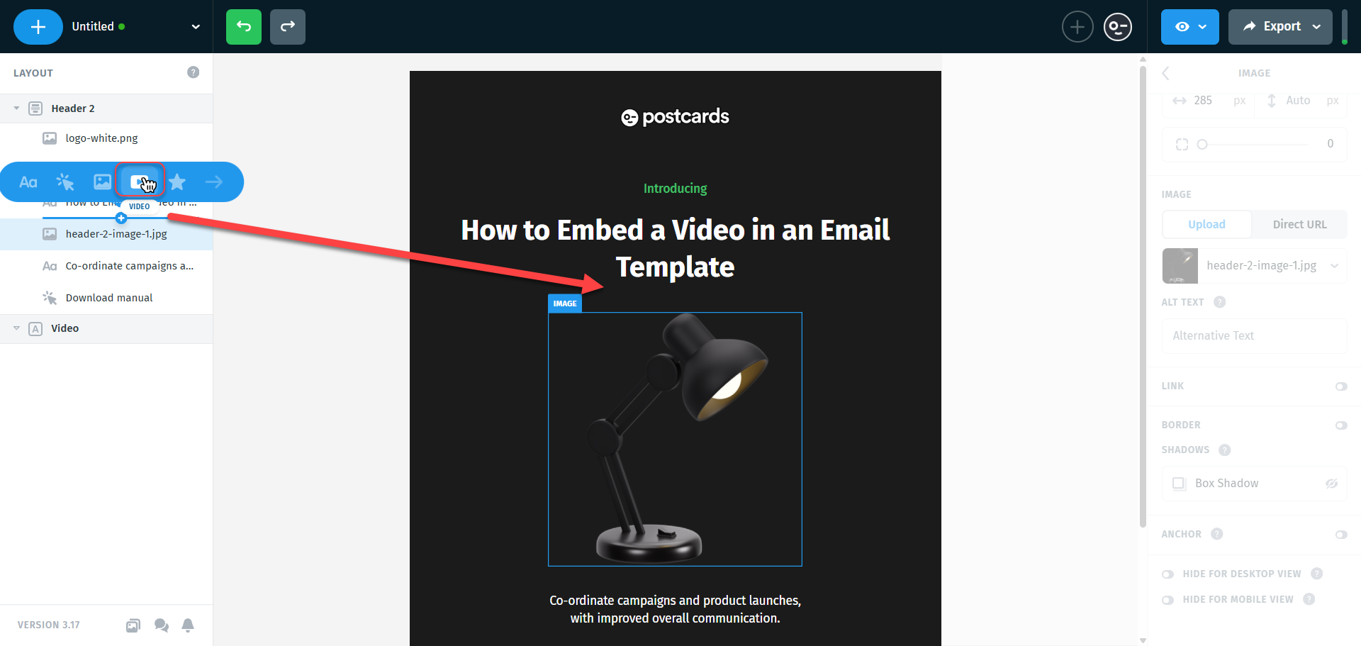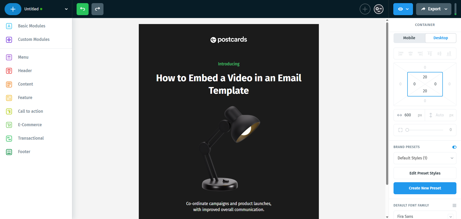 Start by opening the Postcards email builder. This is where you'll create your email design.