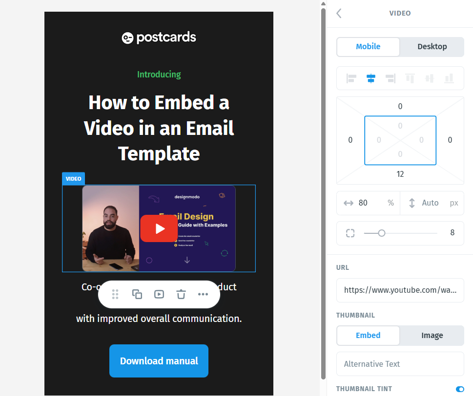 We hope this guide helps you embed YouTube videos in your email newsletters using Postcards. Enjoy creating engaging emails for your audience!