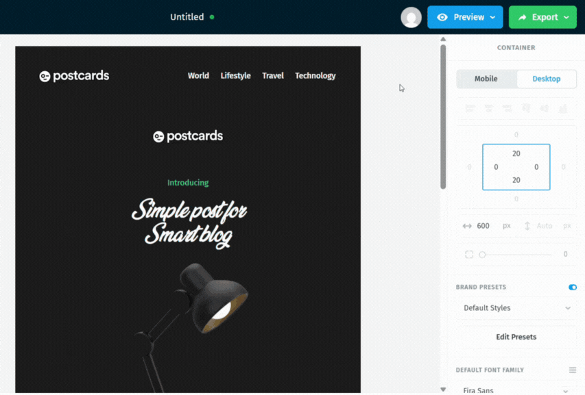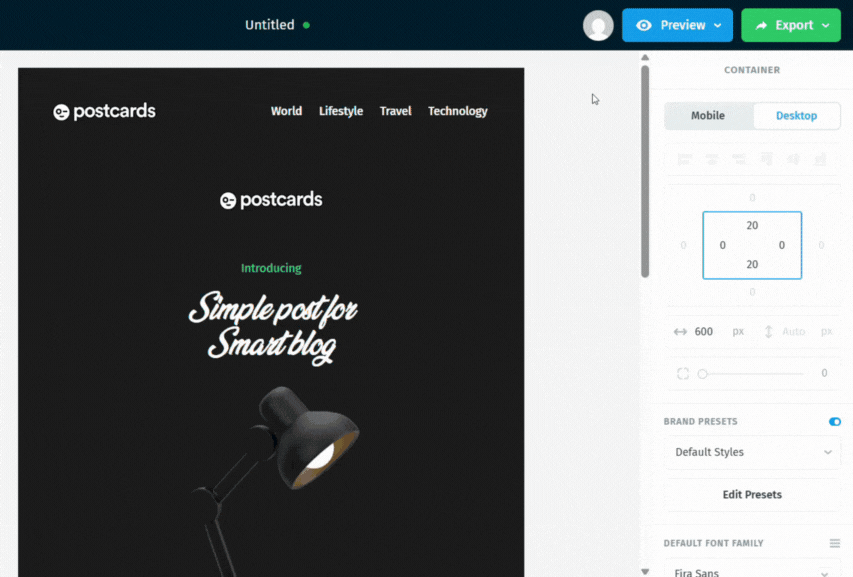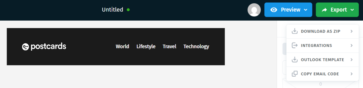 Exporting email templates from Postcards allows you to save or share your email designs for use in various platforms or environments.