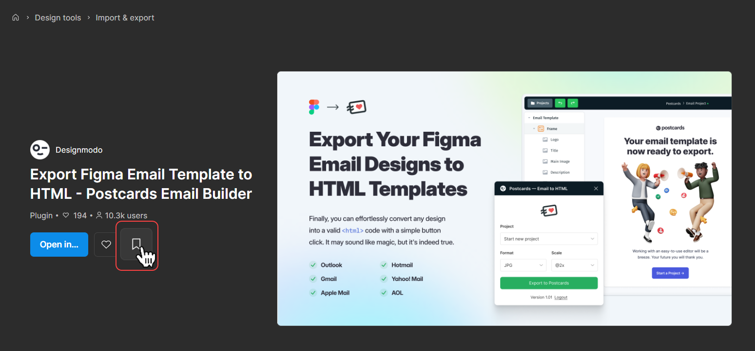This plugin bridges design and production: you create and refine your layout in Figma, then send it directly to Postcards, where you can edit, customize, and export your design into fully responsive, cross‑client compatible HTML emails.