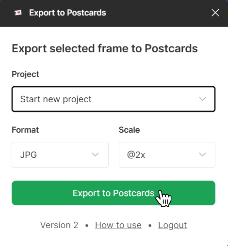Once the plugin is installed, connect your Figma account with Postcards to enable seamless exporting.