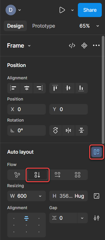 - Avoid applying Auto Layout to nested frames unless you intentionally need horizontal/vertical flows inside them.