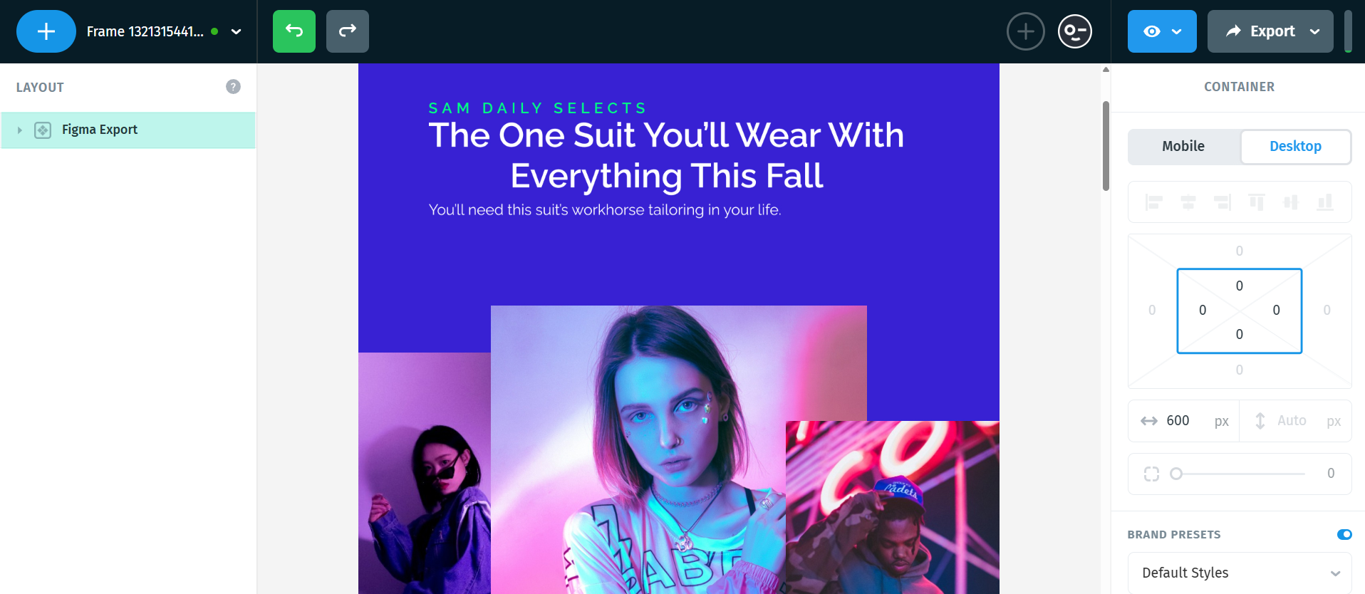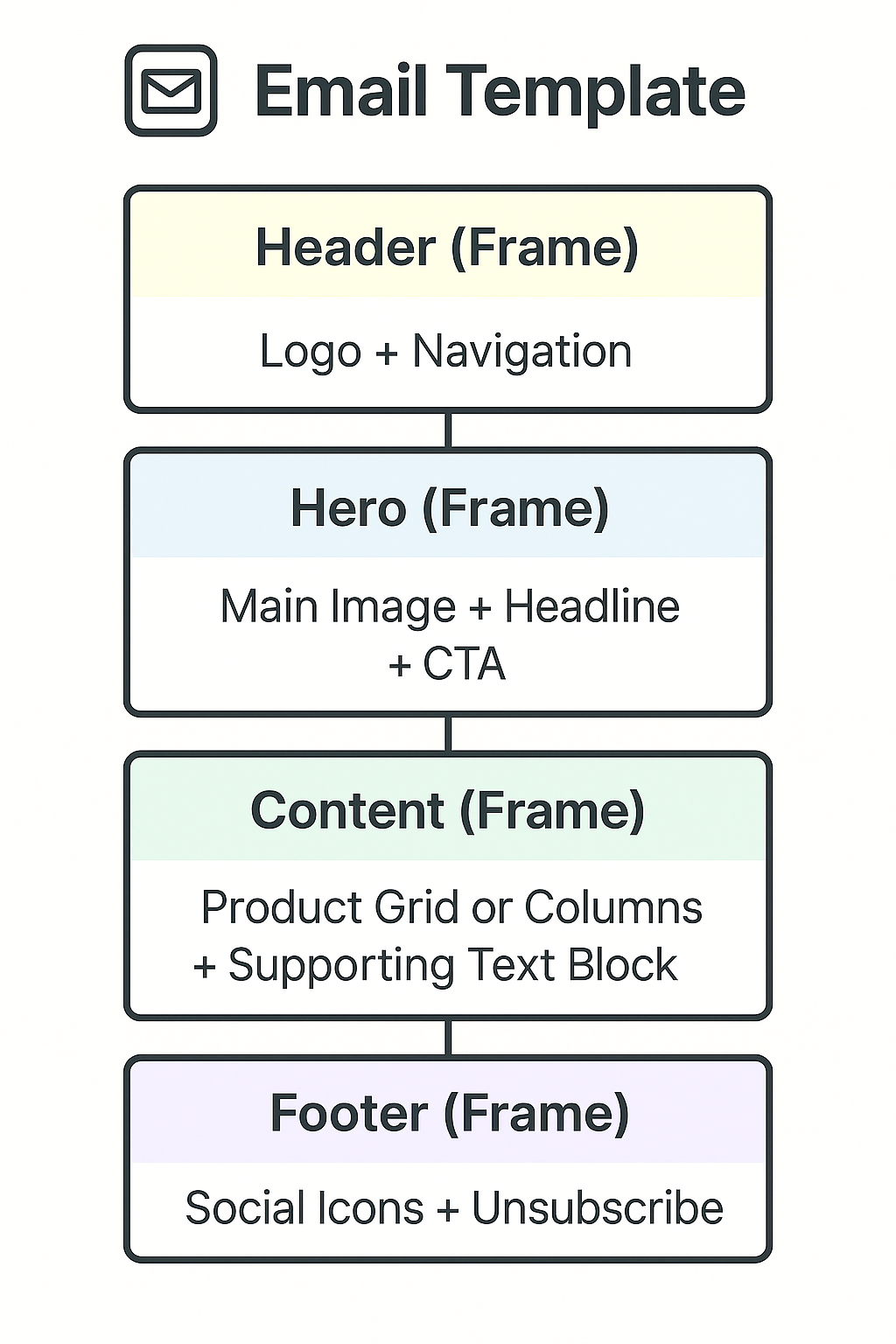 While Figma allows free-form layout, for email exports you’ll benefit from modular, repeatable blocks.