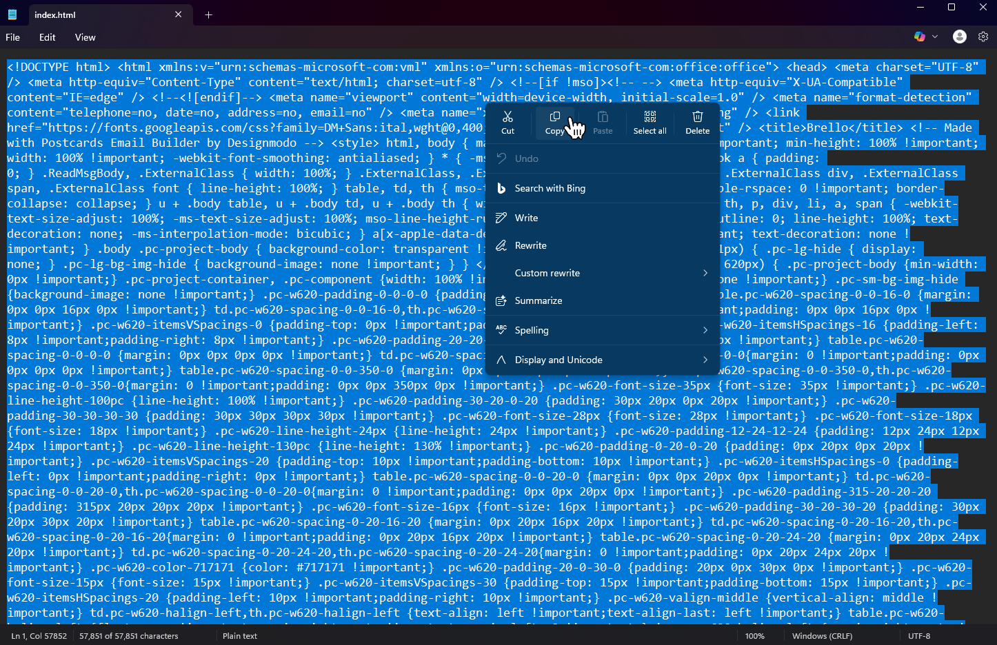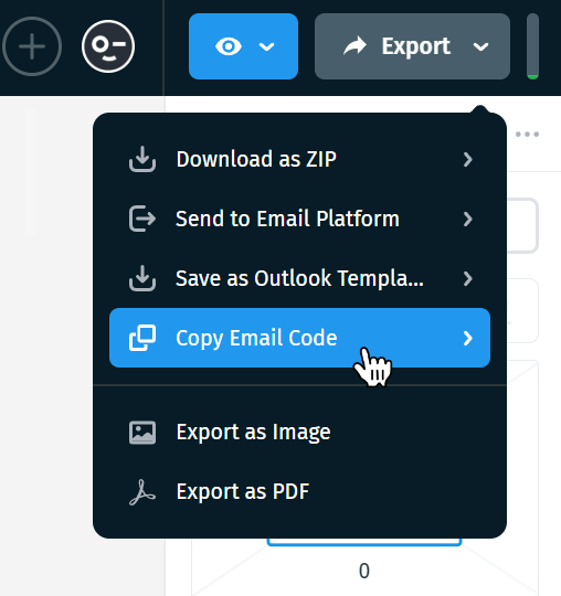 - Export → Copy Email Code to copy the full HTML to your clipboard: