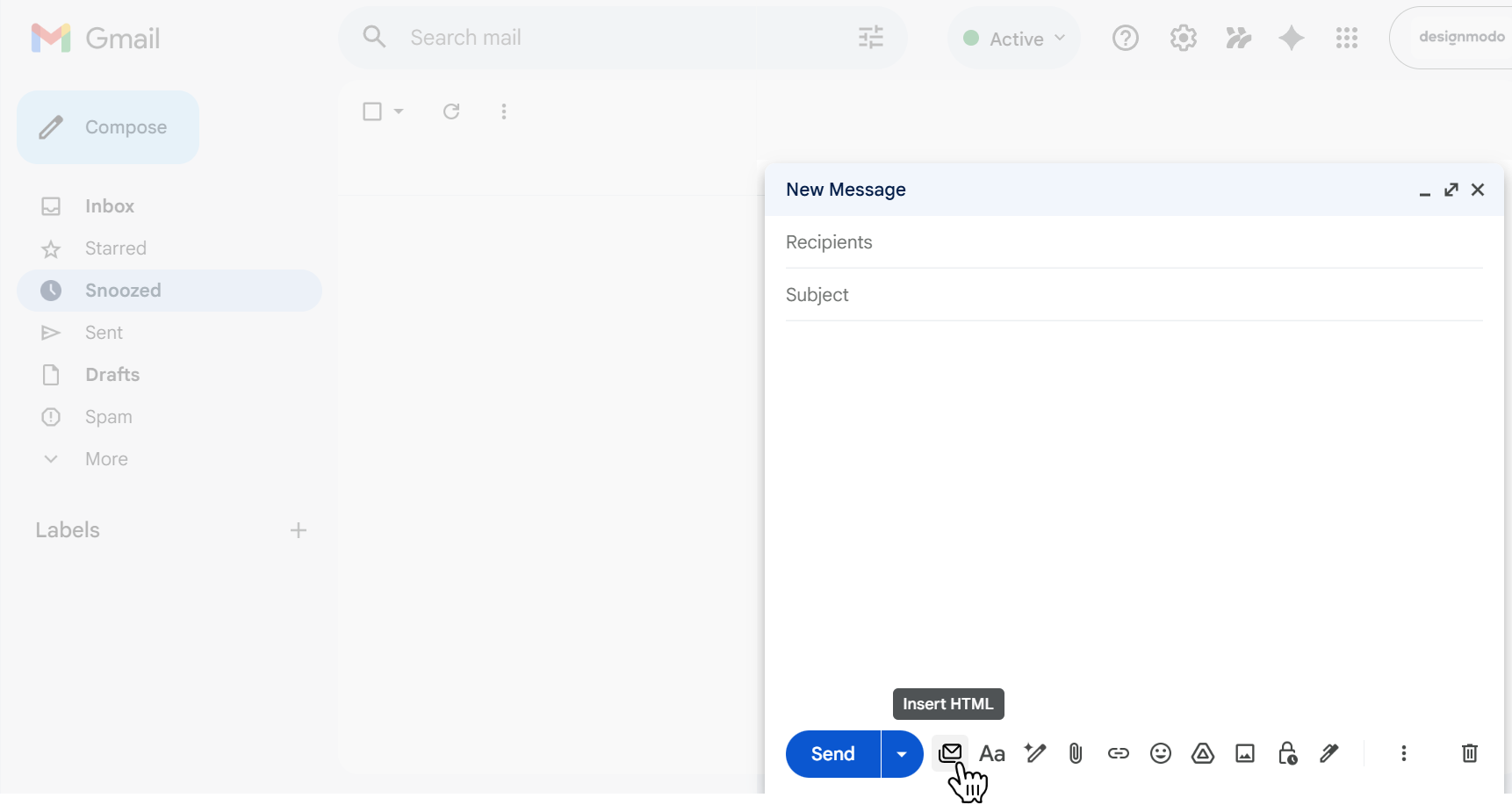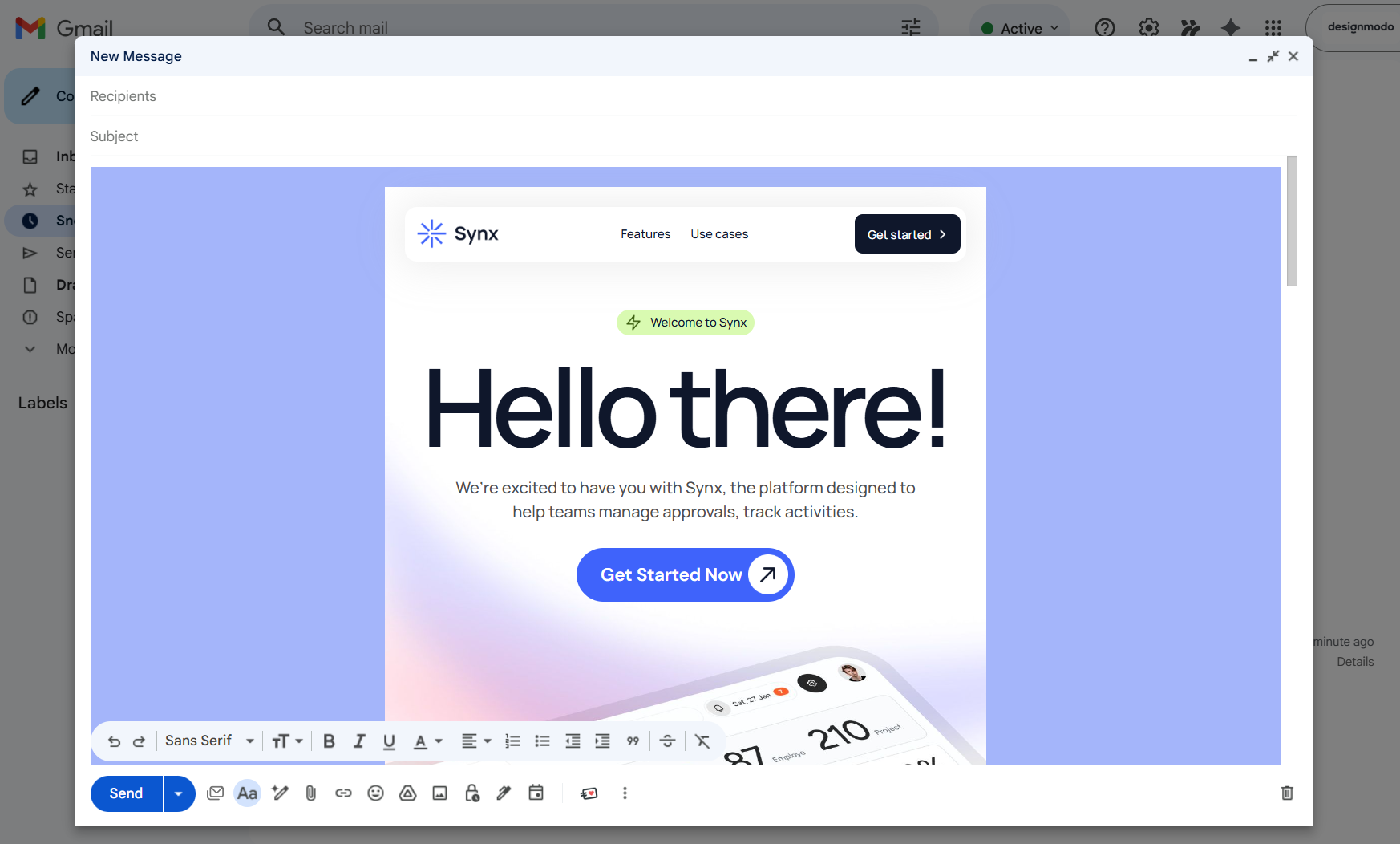 After installation, you can use the plugin to insert HTML email templates created in the Postcards Email Builder into Gmail. Here’s how: