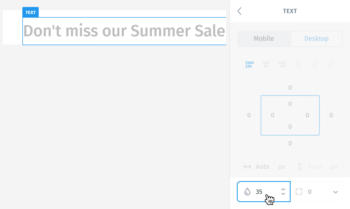 The Opacity setting controls how transparent the text appears. You can type a value or drag left or right to decrease or increase the percentage.