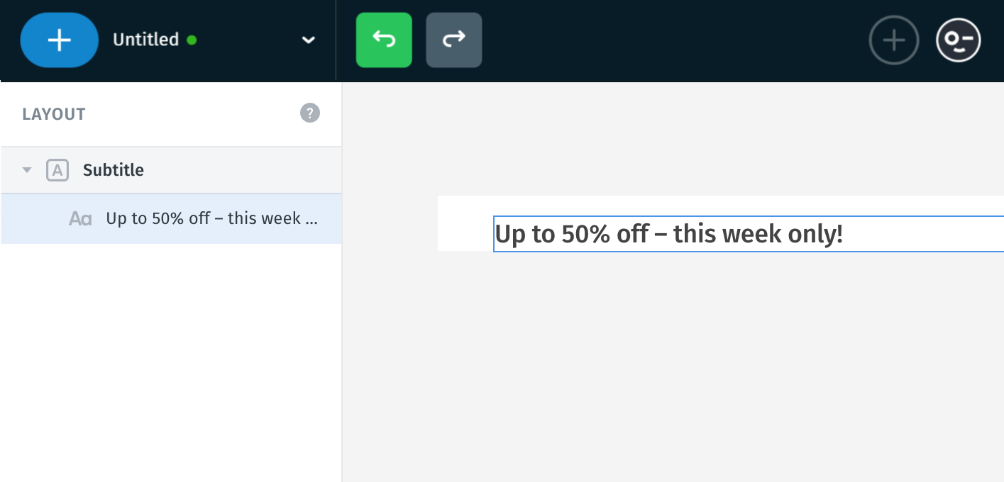 A good place to give more context or a quick explanation. Example: “Up to 50% off – this week only!”