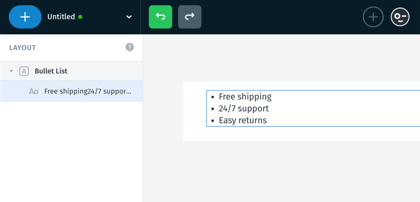 - Bullet List - a list with simple dots before each item. Used when the order doesn’t matter, like features or highlights.