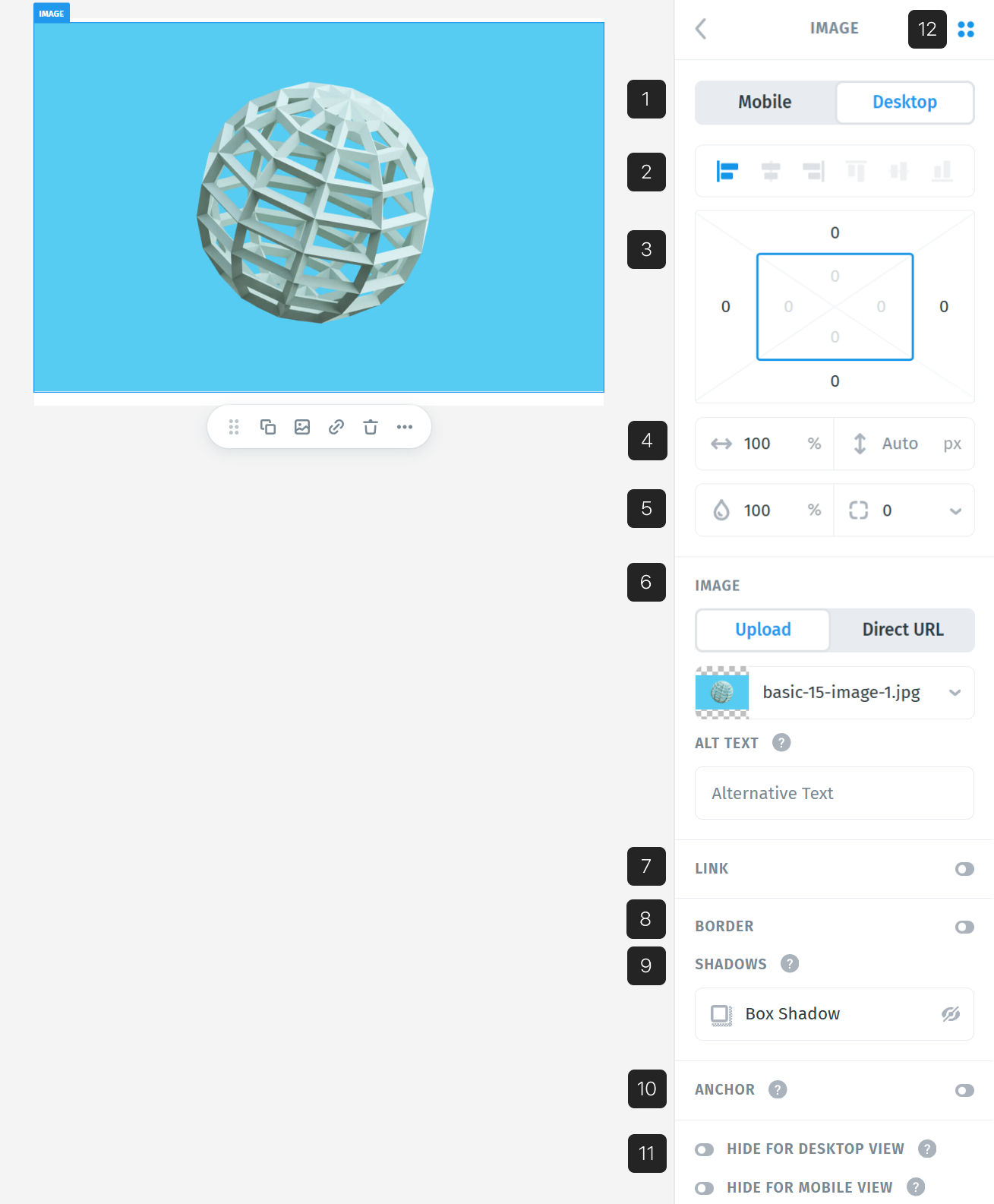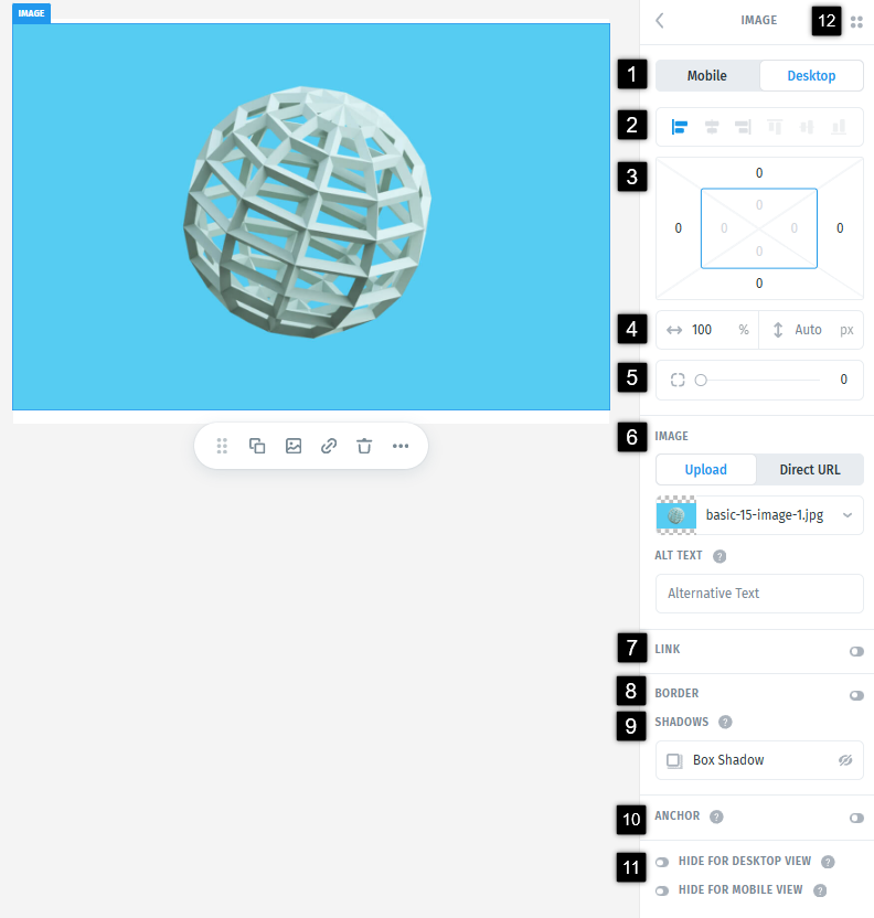 - Choose to hide the image on mobile, desktop, or show it on both.