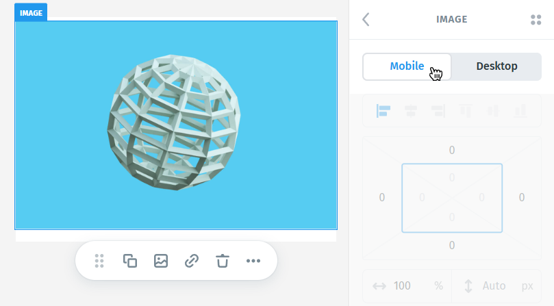 While editing in Mobile view, any settings (described below) you apply will override the Desktop settings. This allows your design to adapt fluidly between devices without duplicating content.