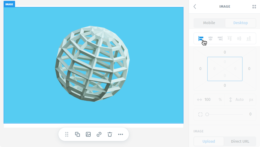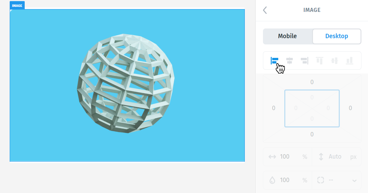 - Left – aligns the image to the left edge of its container