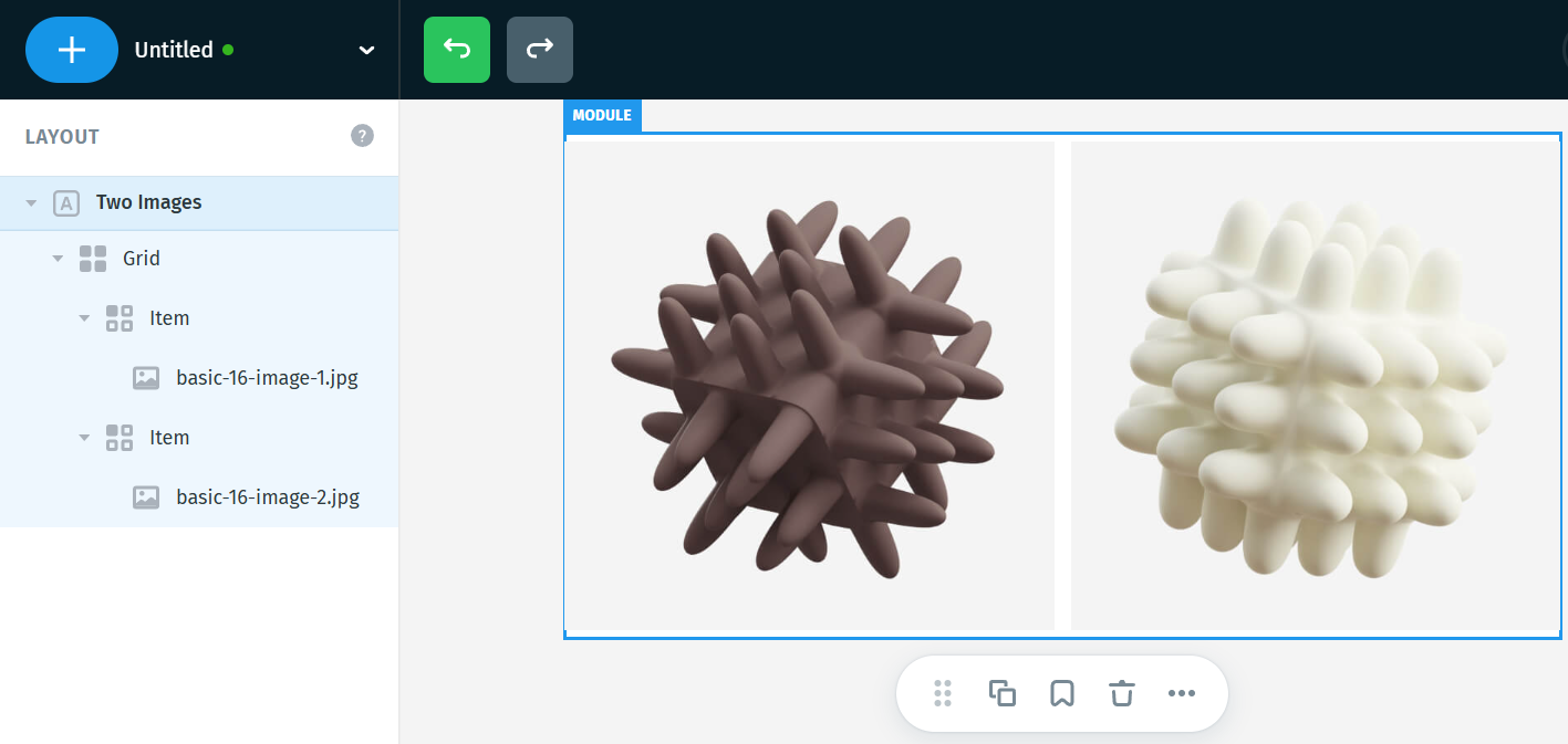 This module is a quick way to display two side-by-side images, already placed inside a grid layout.