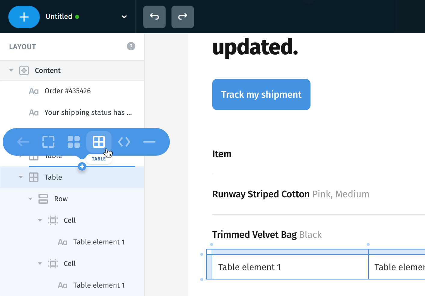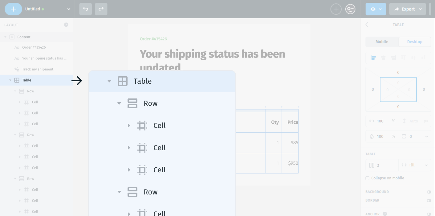 A cell is the smallest unit inside a table row - it’s where your actual content (text, images, buttons, etc.) lives.