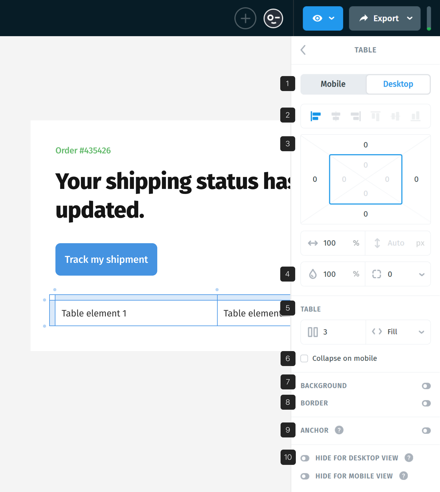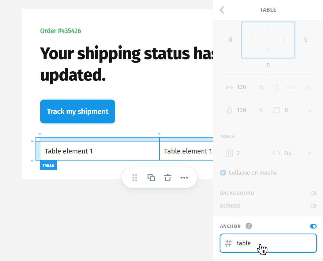 Anchors let you create internal navigation by allowing the table to scroll to specific sections within the same email.