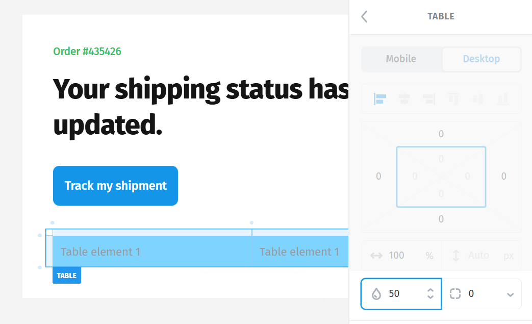 The Opacity setting controls the transparency of the entire Table and applies to all of its contents.