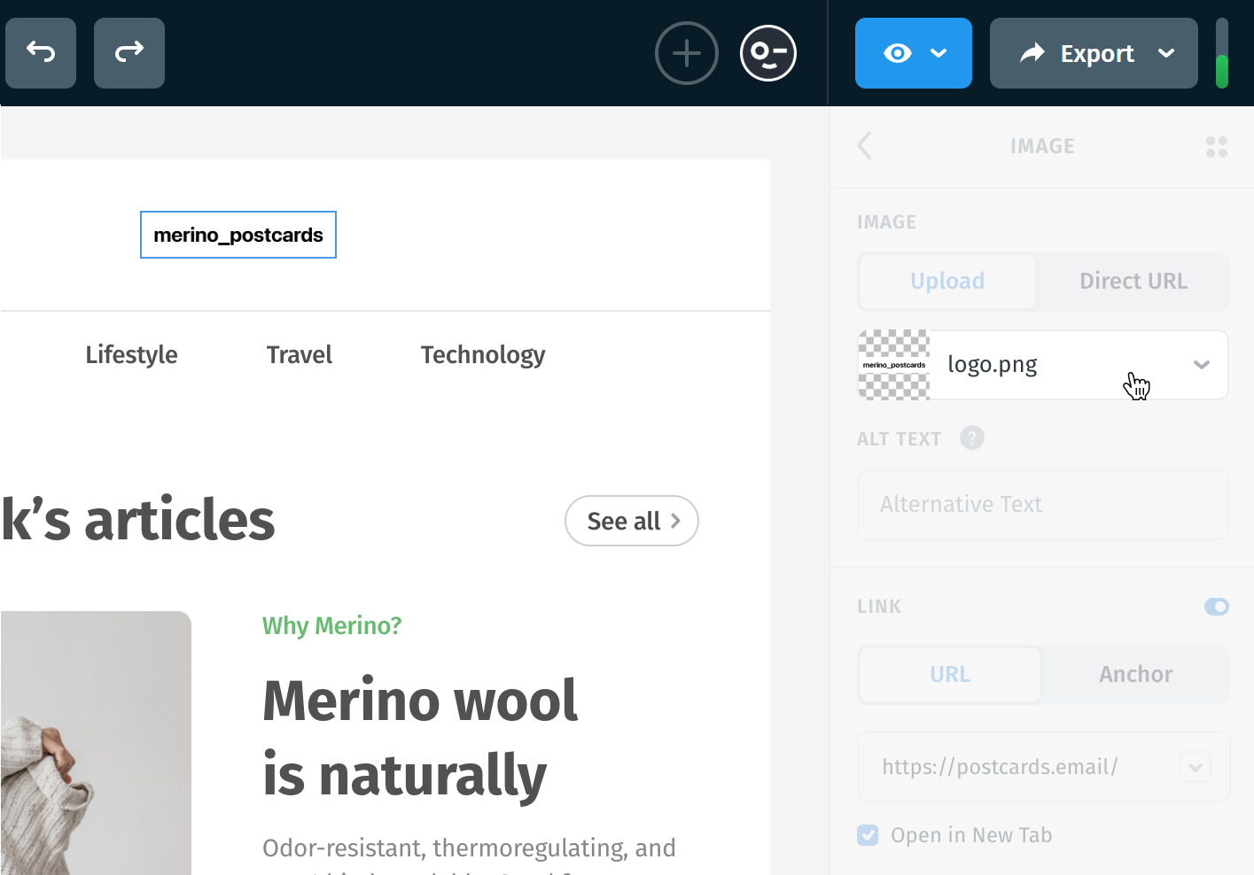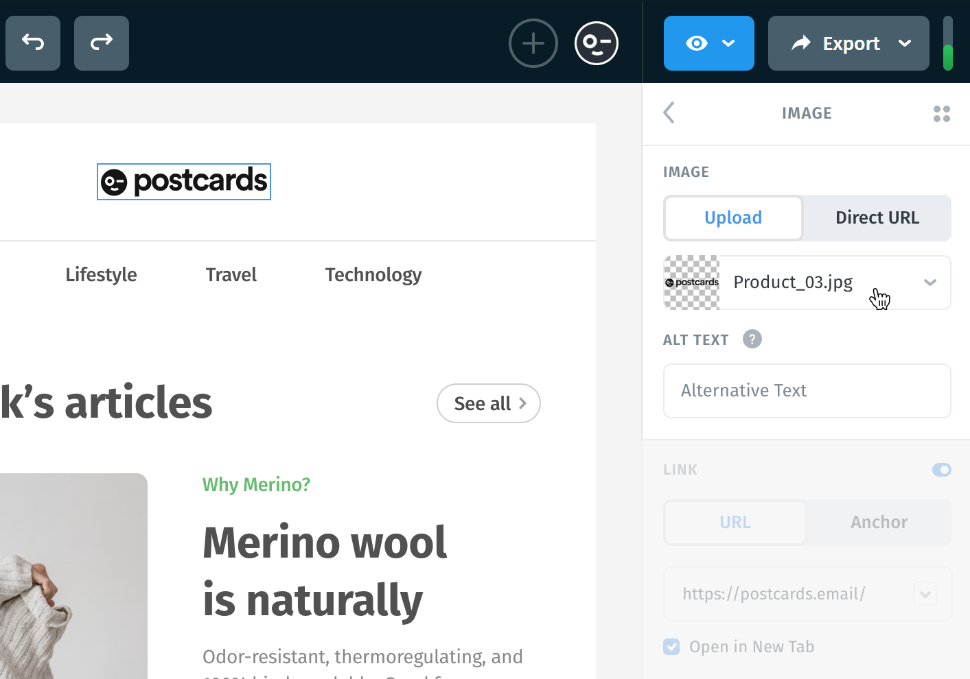 In addition to traditional upload methods, you can also paste images directly into the image container inside the editor using Cmd + C on Mac / Ctrl + C on Windows.