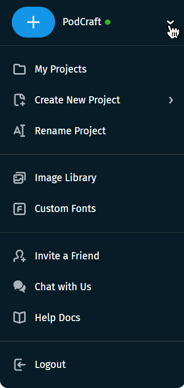Click the small arrow next to your project name to open the Project Menu. This menu gives you quick access to key tools and resources: