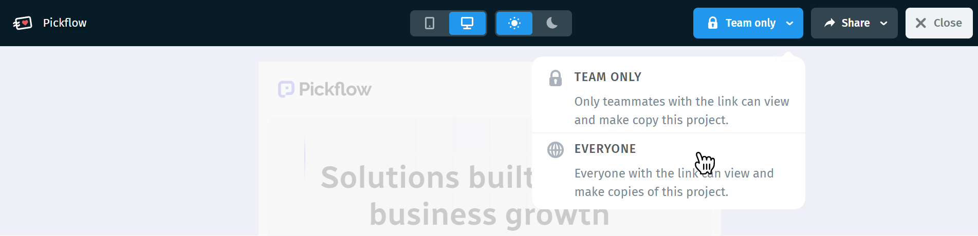- Everyone – Anyone with the share link can view and duplicate the project.