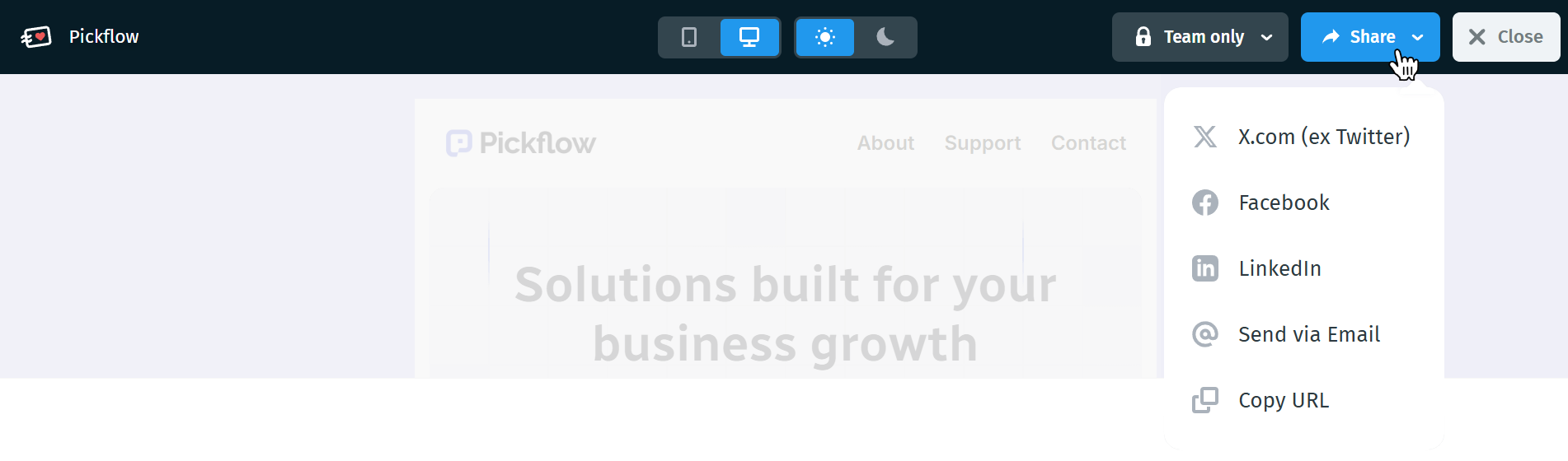 - Copy URL to quickly generate a shareable link for clients or collaborators.