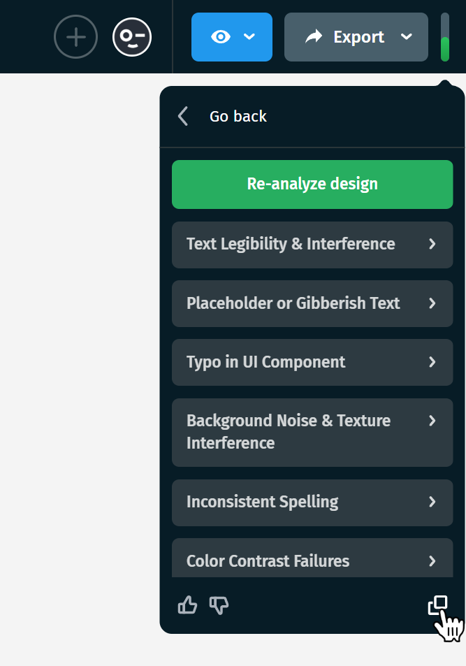 The Visual Insights with AI feature scans your template and detects potential layout, spacing, contrast, and content issues before you export.