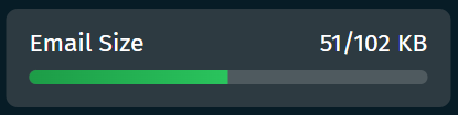 The Email Size Indicator shows your current email size (for example, 51 / 102 KB) and a visual progress bar so you can quickly see how close you are to the limit.