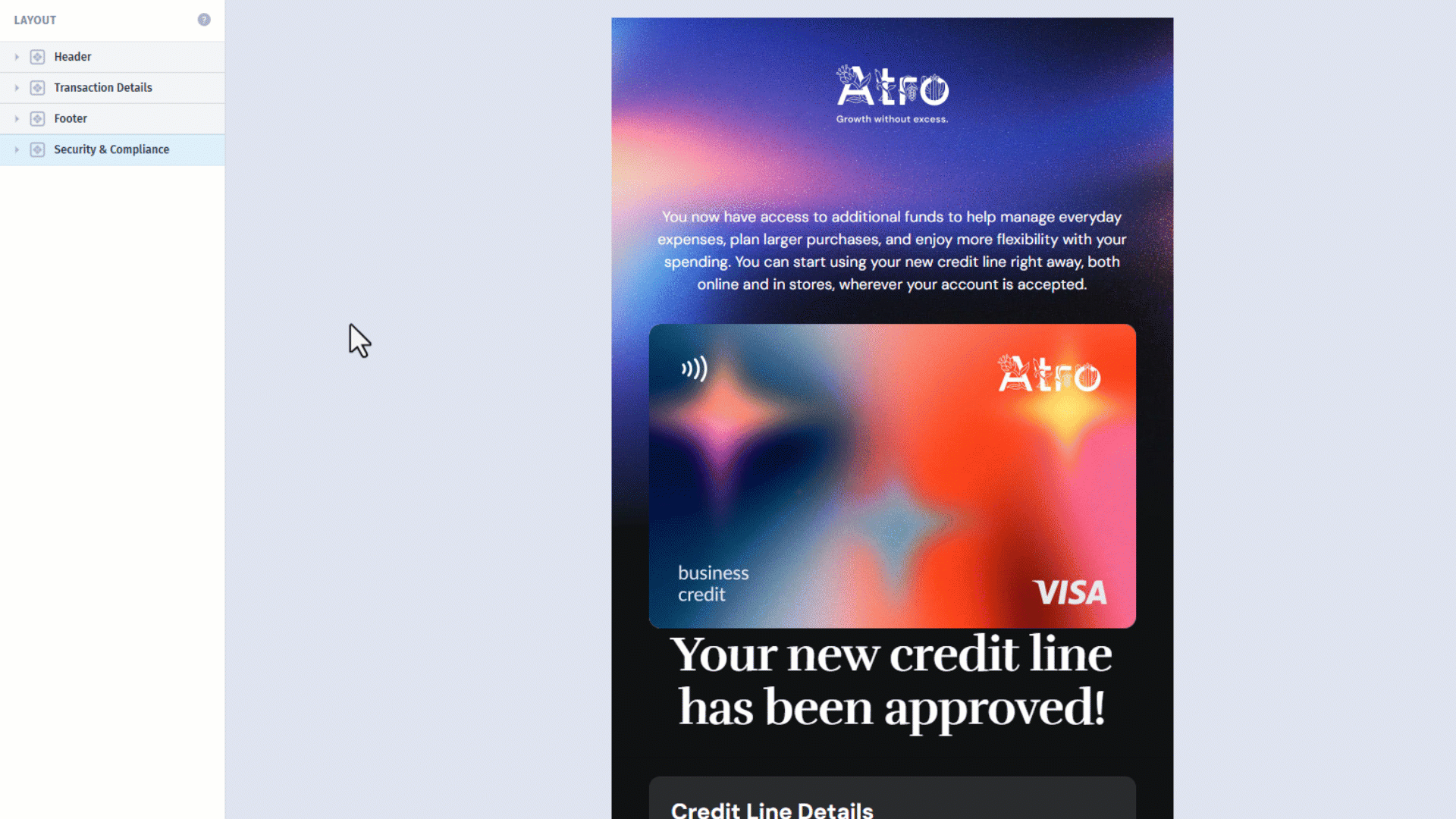 Your Layout panel is the map of your email, a visual guide to how everything is structured and arranged from top to bottom. It helps you see how each module and its elements are stacked in order, making it easy to create, rearrange, duplicate, or fine-tune sections at any time. This gives you full control over the flow, hierarchy, and composition of your design.