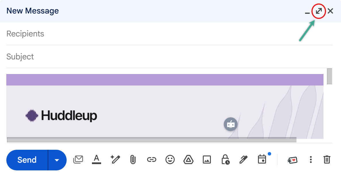 For an easier editing experience, click the “Full screen” icon (the diagonal arrows in the top-right corner of the compose window) to enlarge the editor; this gives you more space to view your template and make precise text or layout changes.
