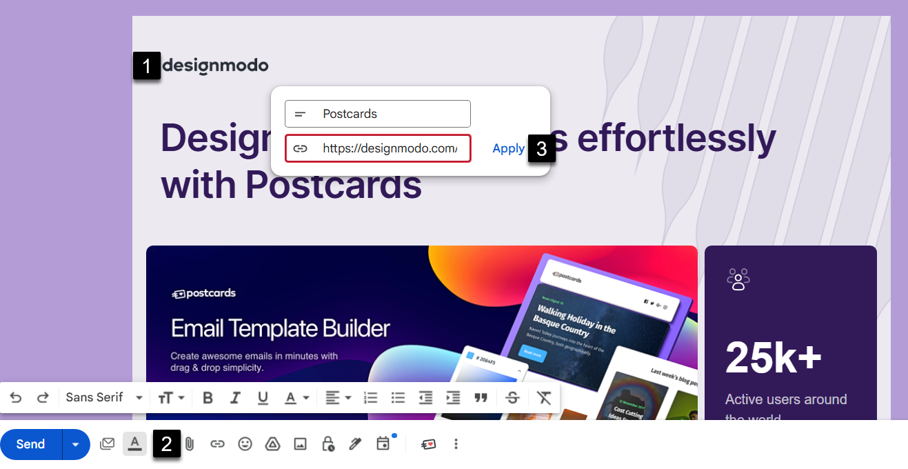 - Use Gmail’s formatting toolbar at the bottom of the compose window to: