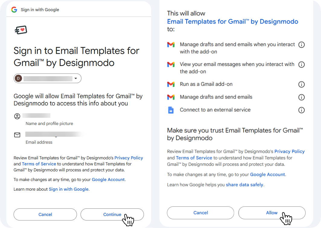 The first confirms that Google will allow the app to access info about your account.