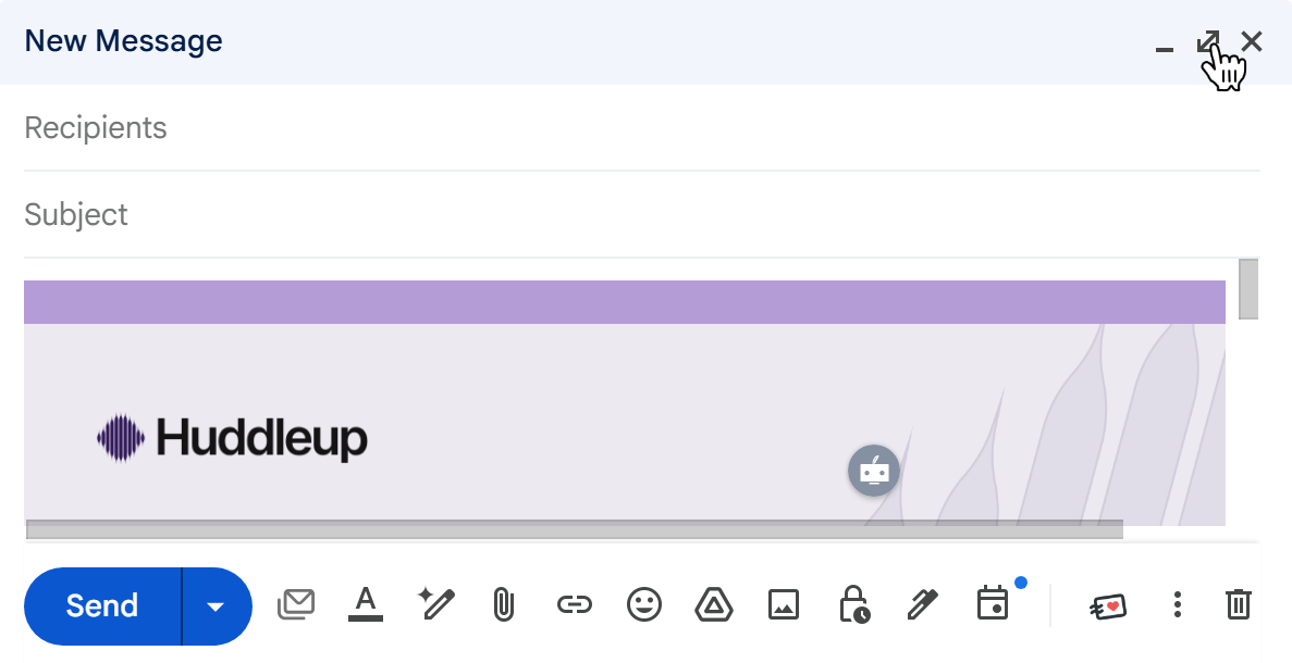For an easier editing experience, click the “Full screen” symbol (the diagonal arrows in the top-right corner of the compose window) to enlarge the editor; this gives you more space to view your template and make precise text or layout changes.