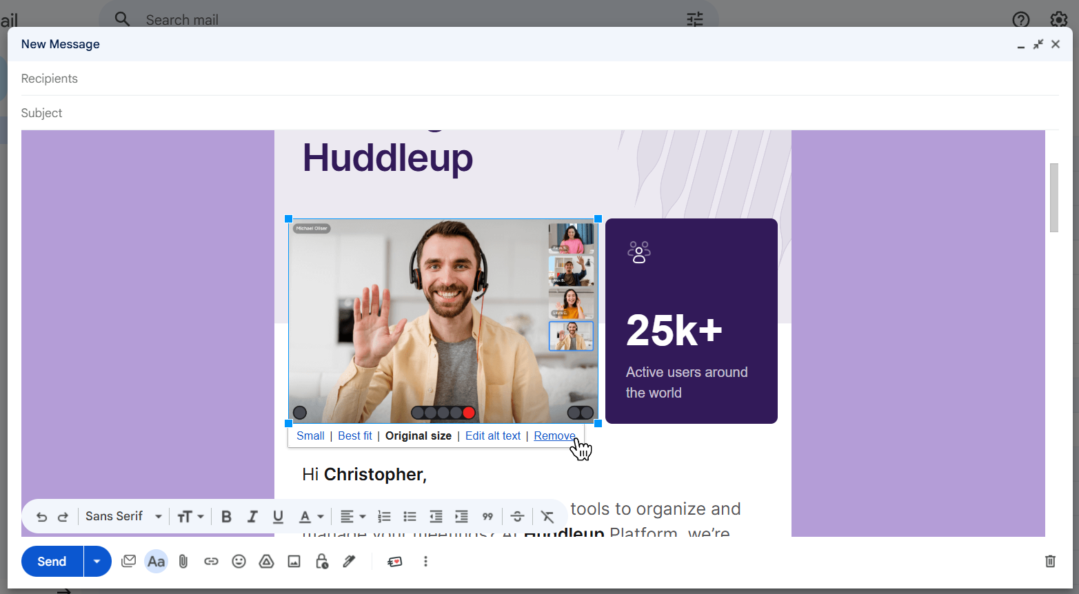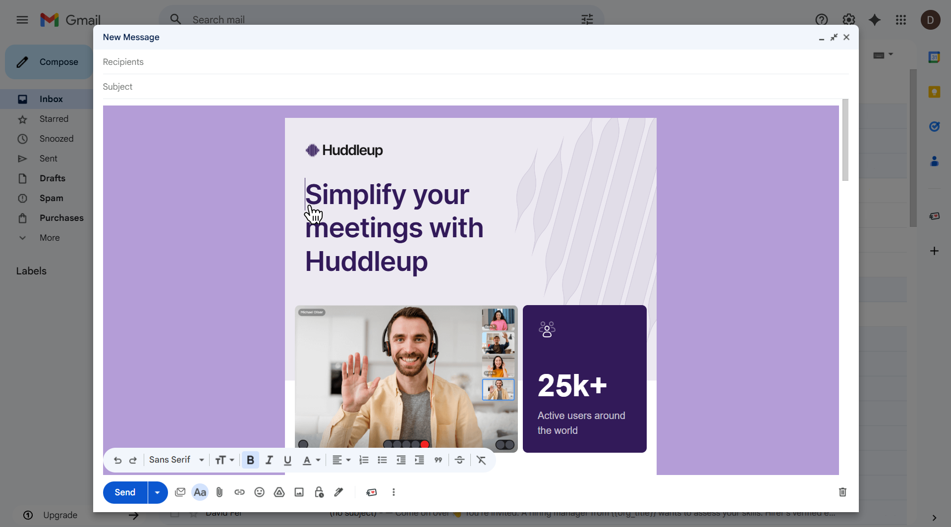 Once your template is inserted into the email body, you can edit it just like any regular Gmail message.