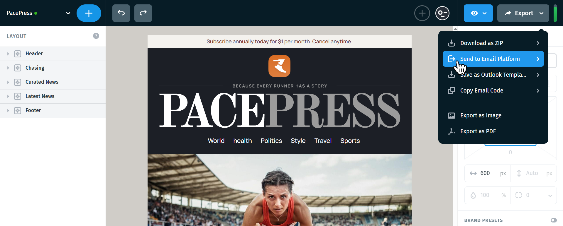 - In Postcards, go to Export → Send to Email Platform.