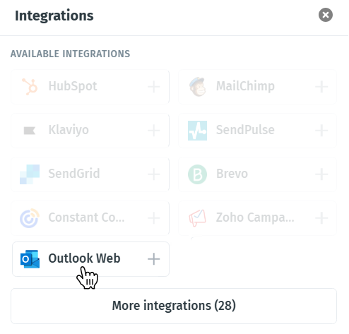 - In the integrations pop-up, select Outlook Web.