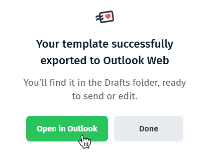 Postcards exports your design directly into your Outlook account as a Draft, so you can review it, add recipients, and send without manually pasting HTML.