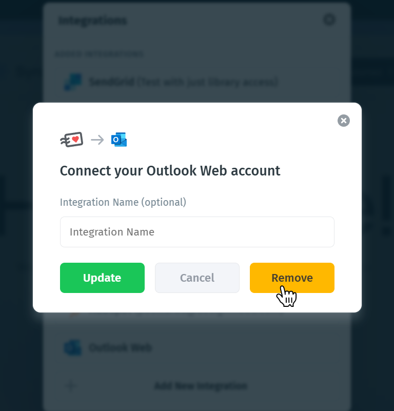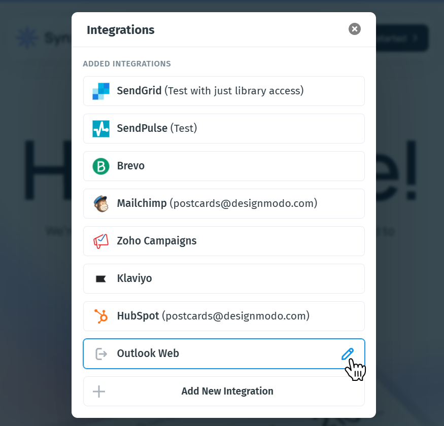 - In the integrations list, hover over Outlook Web and click the pencil icon.