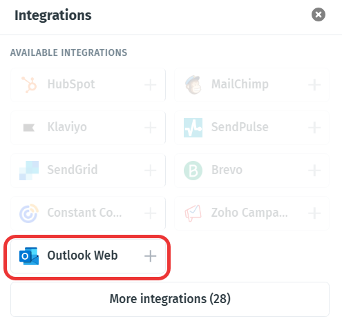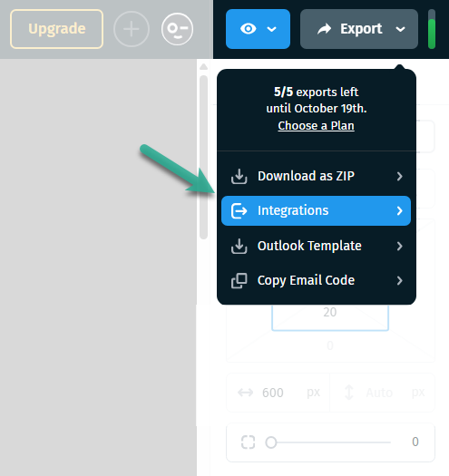 - Choose Integrations from the export menu. You’ll see a pop-up with the one-click integrations list.