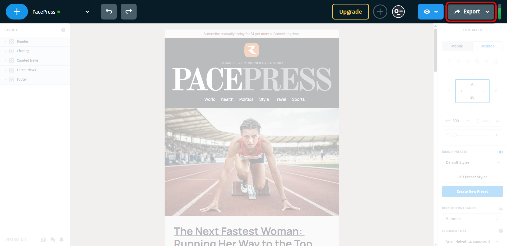 Outlook uses the Microsoft Word rendering engine, which means it interprets HTML and CSS differently from most other email clients. If you run into stubborn Outlook issues, consider reading about Outlook-specific best practices and testing before sending. You can also Export as Image for critical sections or the entire design.