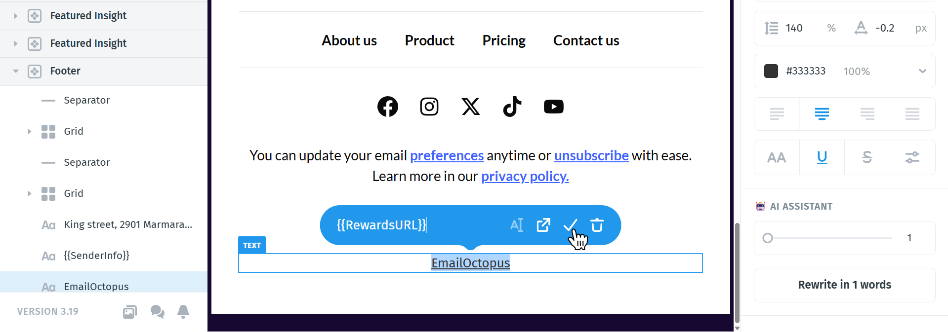 If you are using a free EmailOctopus account, you must also include the rewards link.