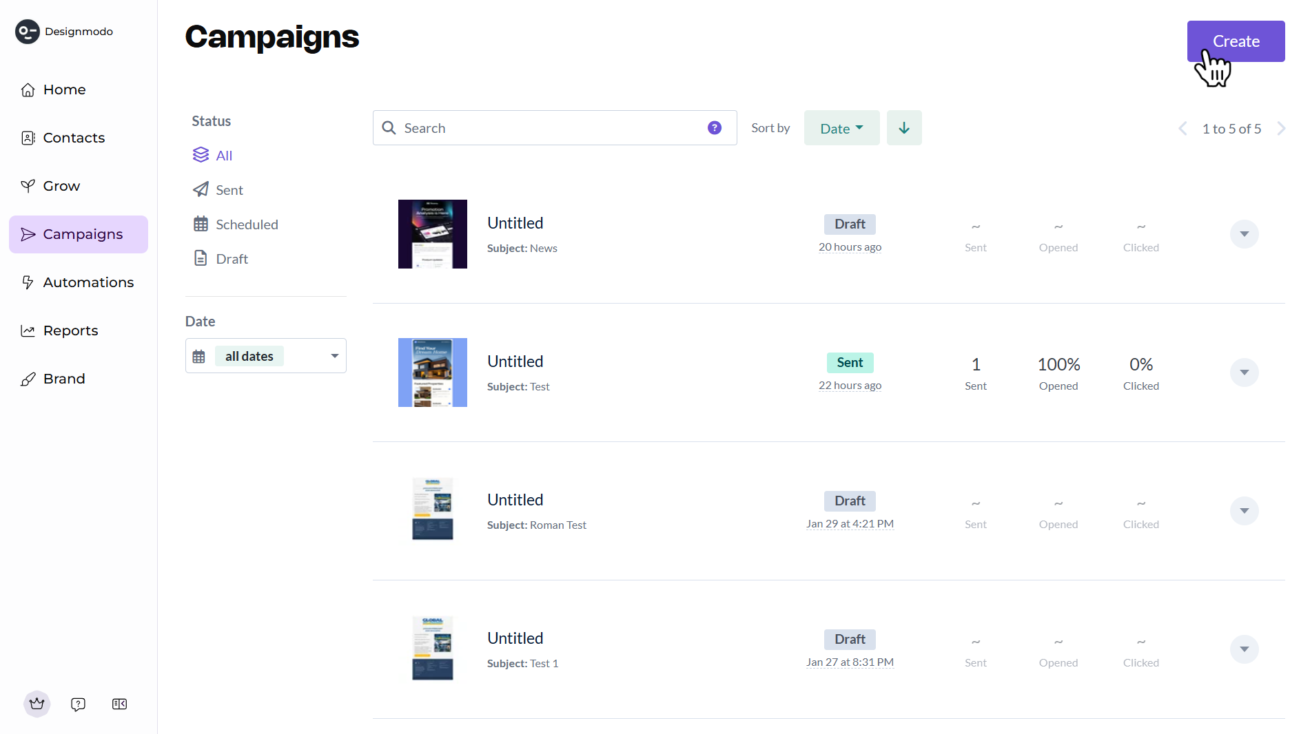 Click Create campaign in the top-right corner: