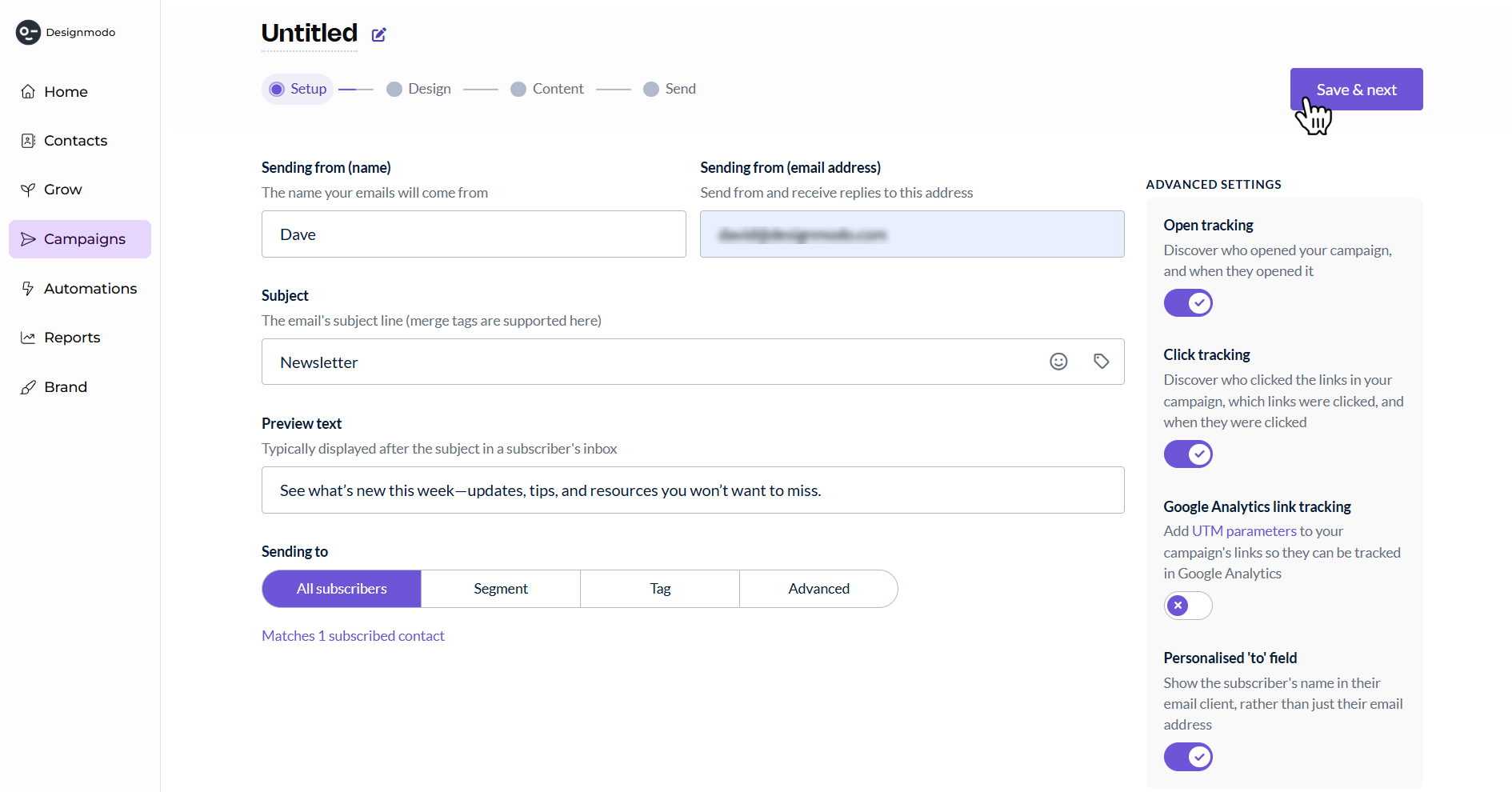 - Sending address – the email address the campaign will be sent from