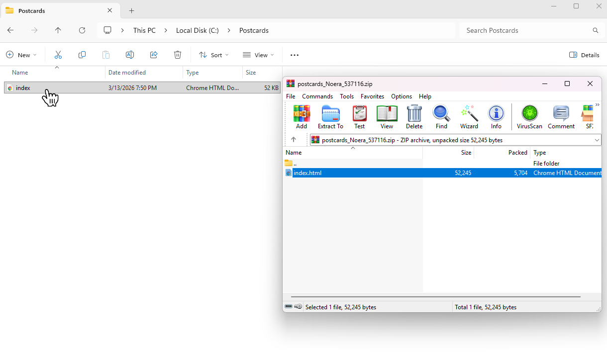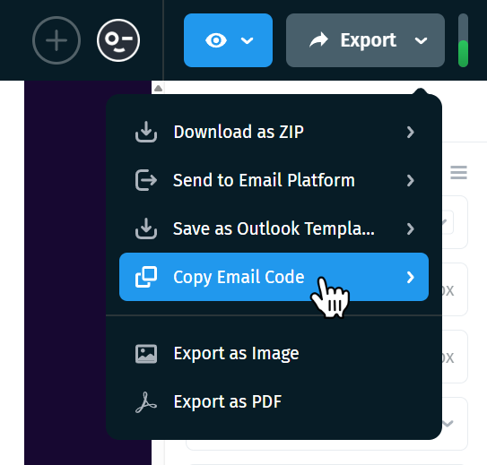 In Postcards, click Export → Download as ZIP. Remember to enable the “Host images/fonts online” option when exporting your template from Postcards so that all images and fonts are properly hosted and accessible when the email is sent.