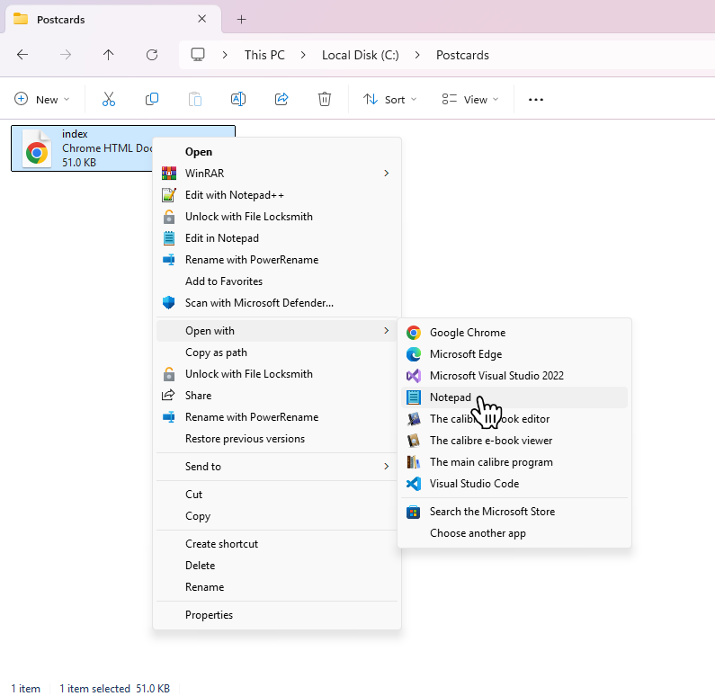 - Right-click the file and open it using a text editor such as Notepad, VS Code, or Sublime Text.