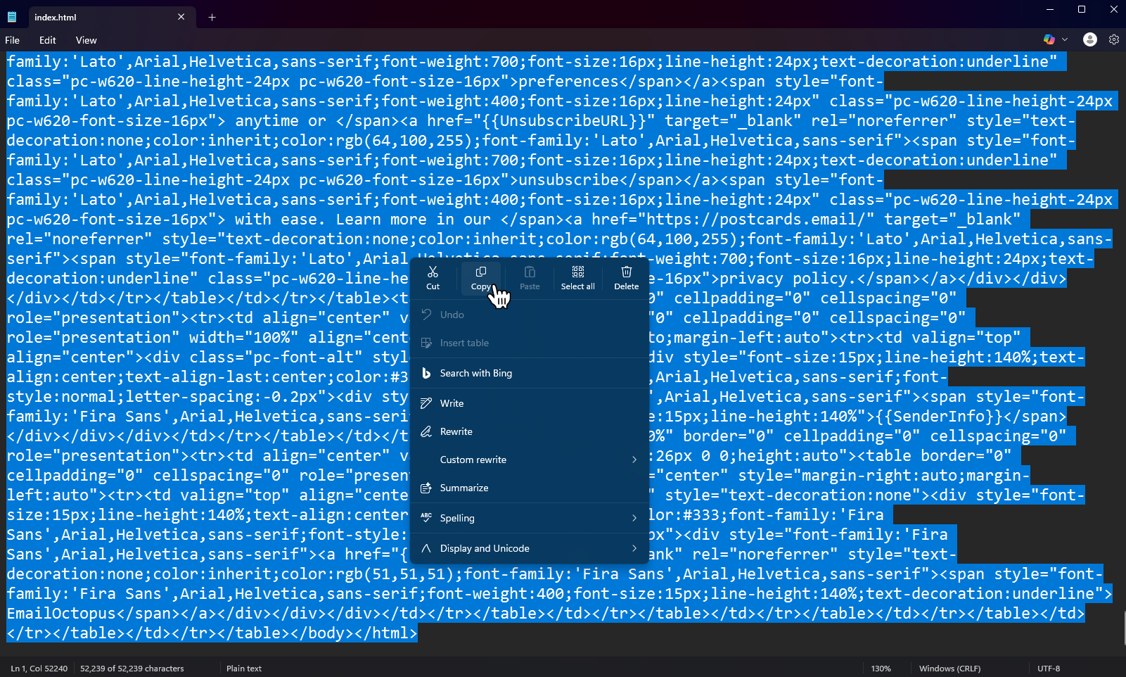 - Press Ctrl + A (or Cmd + A on Mac) to select all the code and copy the text.