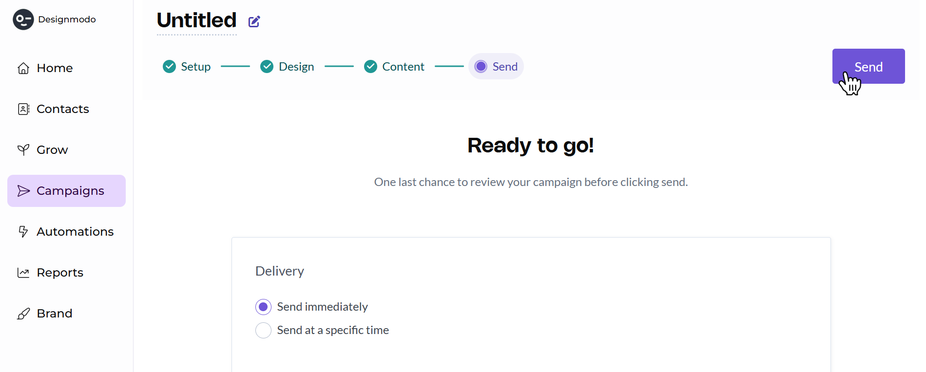 Once you’re satisfied that everything is set up correctly, click Send in the top-right corner to launch your campaign.